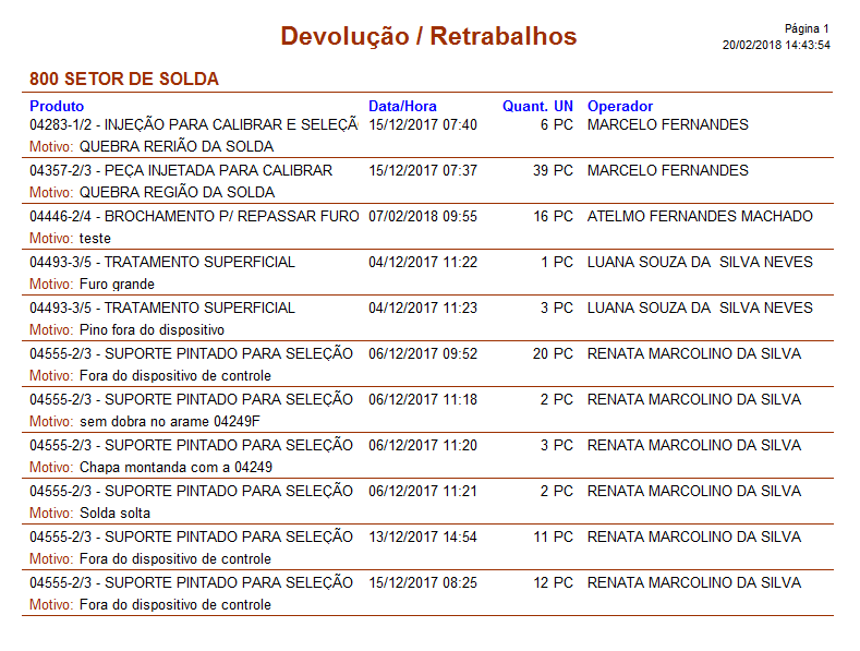 Apresenta Lista de Retrabalhos do setor da Grade.