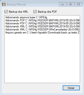 Permite realizar o Backup dos XML e dos PDF´s ou de ambos