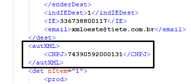 CNPJ Aut.XML: Permite a terceiros (com a indicação do CNPJ ou do CPF das pessoas autorizadas), a fazer o download do XML da NF-e no portal nacional das NF de todas as Danfes emitidas para a empresa.