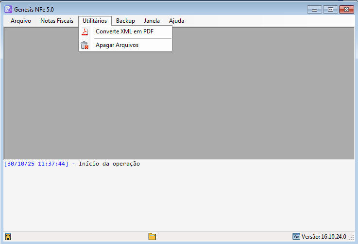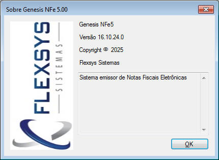 Apresenta informações sobre a versão do Gênesis NFe5G, instalado.
