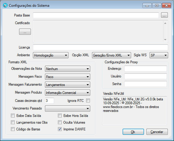 Imprime DANFE: Quando marcado imprime automaticamente o documento na impressora padrão.