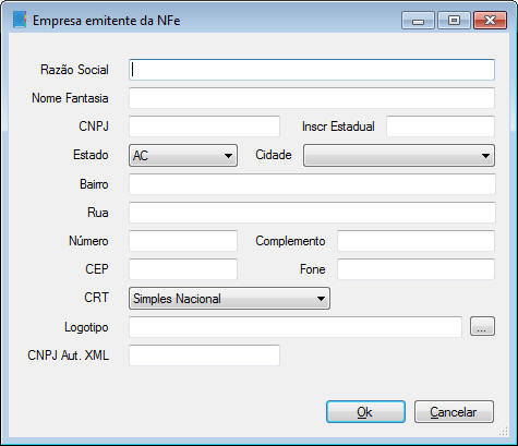 Estado: Selecionar a Unidade da Federação da Empresa.