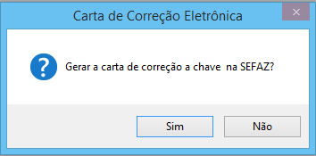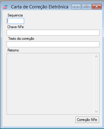 Seqüência: Informar a seqüência da carta de correção, ou seja, primeira, segunda, etc. Se indicado seqüência errada, será apresentado mensagem no campo Retorno.