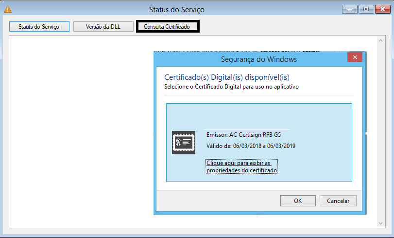 Acesso - Notas Fiscais / Status do Serviço / Consulta Certificado