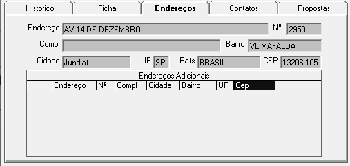 Apresenta o endereço principal e os endereços adicionais do cliente na grade.