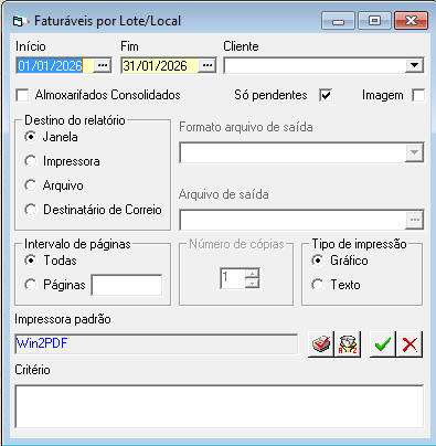 Cliente: Seleção de um cliente ou todos.