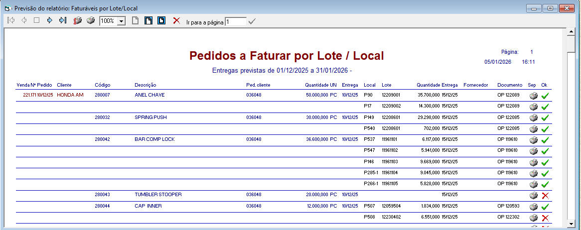 Imagem: Quando marcado mostra coluna OK para casos de pedidos que tenham saldo.