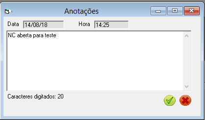 Quando acionado inclui uma nova Não Conformidade