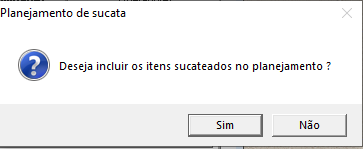 Opção Sim, faz o recalculo os materiais, apresentando o resultado na aba Materiais utilizados.