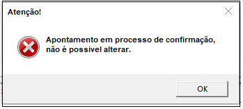 Nesta situação, cancelar o apontamento e realizar nova confirmação.