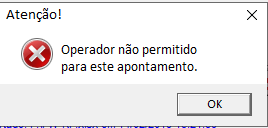 1. Não permite confirmar o apontamento de produção, caso exista outro apontamento para a mesma OP (Ordem de Produção) e Operação "não confirmado", e apresenta mensagem.