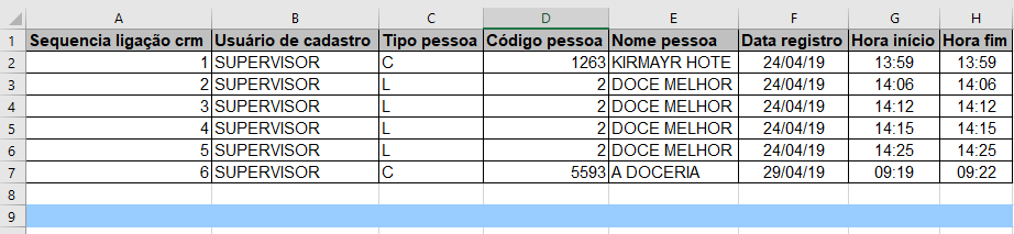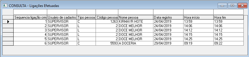 Ligação de / Até: Intervalo de datas para a consulta das ligações realizadas propostas, em branco seleciona todo o período de ligações realizadas.