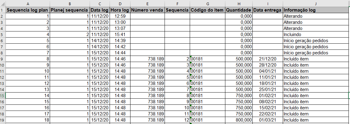 Log para Excel.