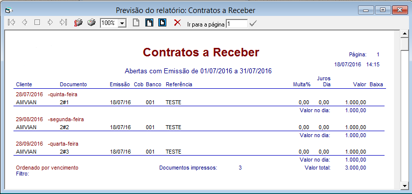 Acesso - Financeiro / Receber / Relatório / Contrato a Receber.