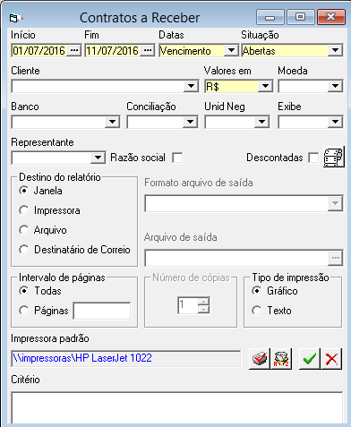 Cliente: Seleção dos contratos de um único cliente, ou todos, quando campo é deixado em branco.
