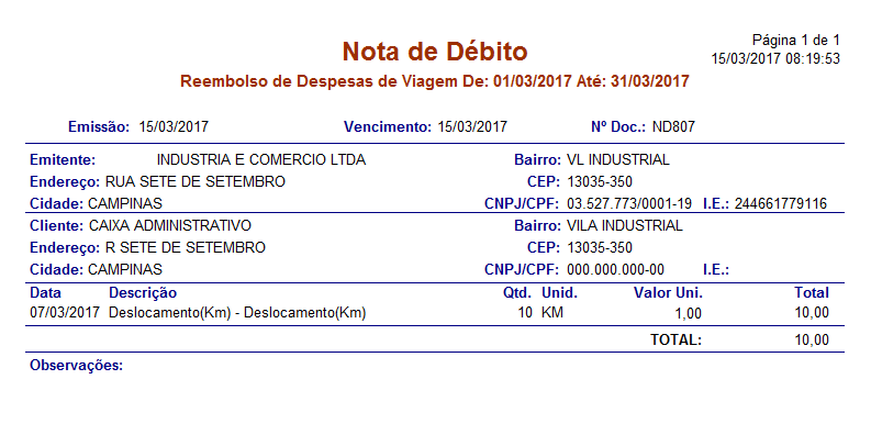 Quando da seleção da opção Nota de Debito, na confirmação da impressão o relatório, apresenta a possibilidade de gerar Conta a Receber.