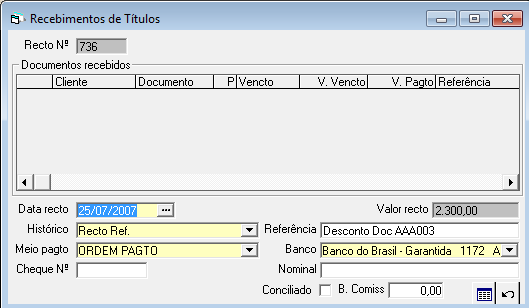 Caso o cliente tenha títulos a compensar o Genesis abre a tela de compensação.