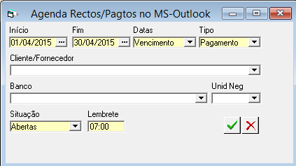Objetivo: Incluir na lista de tarefas do Outlook as contas a receber e a pagar selecionadas.
