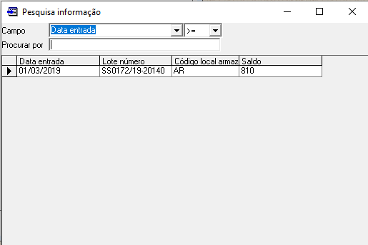 tela a pesquisa e seleção do lote através de duplo click na linha correspondente
