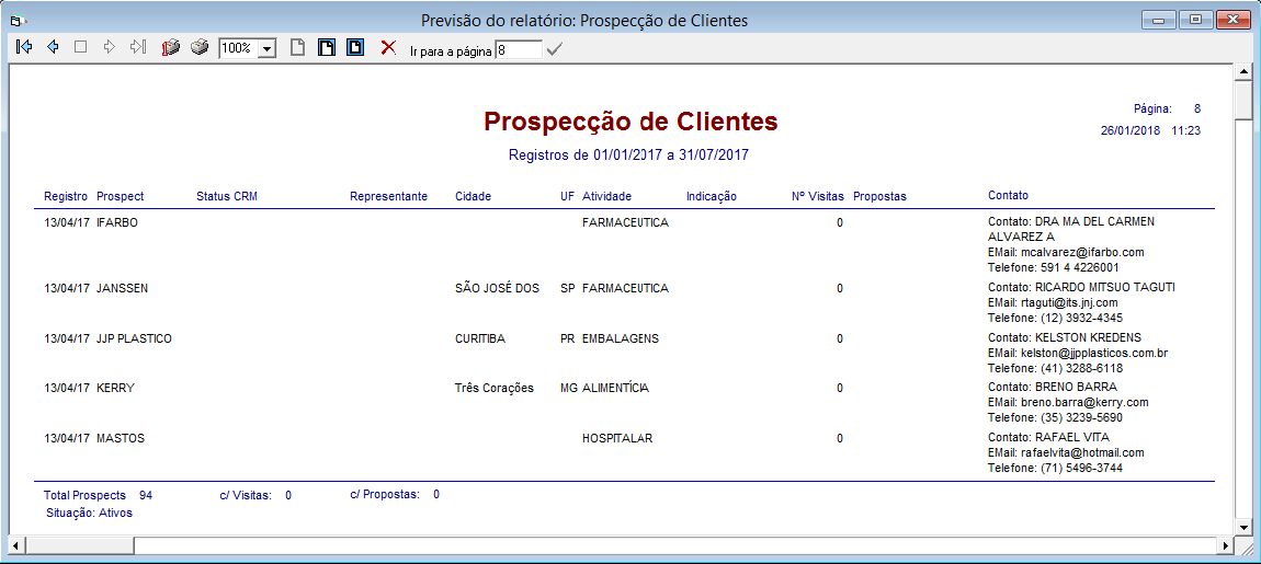 Objetivo - Emitir o relatório dos prospects registrados com opção para exibir o histórico de relacionamento (CRM).