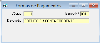 Código: Informar o código, obedecendo a seqüência numérica, da forma do pagamento.