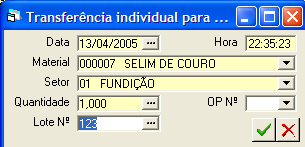 OP N.: número da OP que requisitou o material, opcional. Quando informado, a reserva do material transferido é desfeita.