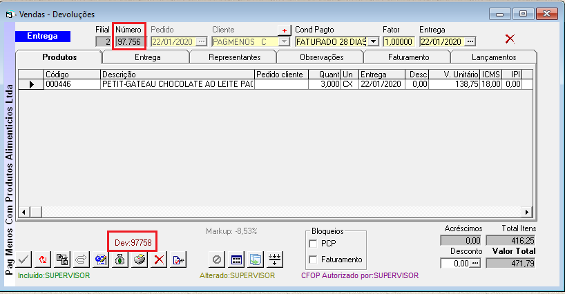 2. O novo código e descrição serão considerados na Venda - Entrega, em substituição ao código anteriormente informado, mantendo as demais informações da Venda.