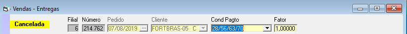 Entregas: Registra a entrega da venda, inicia o processo de faturamento e expedição. Baixa pedido(s), atualiza estoques(1), lança financeiro(2), e prepara a emissão da nota fiscal. Permite conversão de pedidos em entregas com baixa total do pedido ou seleção de itens de vários pedidos do mesmo cliente em uma única entrega. Verifica crédito se o valor da entrega for maior que o crédito aprovado no pedido. Pedidos em outra moeda são convertidos para R$.