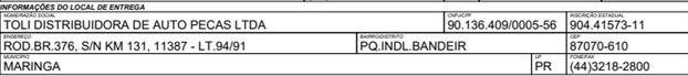 comando com as teclas e digitará o número da entrega a ser importada (os itens