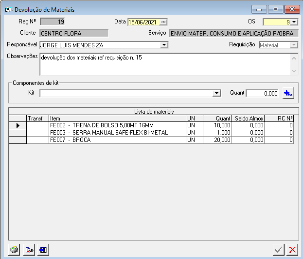 Objetivo - Devolver os materiais não utilizados na execução dos serviços para o estoque.