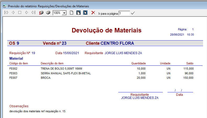 Requisição: Material (somente itens cujo grupo de produtos estejam marcados como Matéria Prima) ou Produto (somente itens que estejam na venda ligada a Ordem de Serviço).