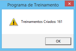 Com a confirmação da operação, temos mensagem para confirmação da criação dos Treinamentos.