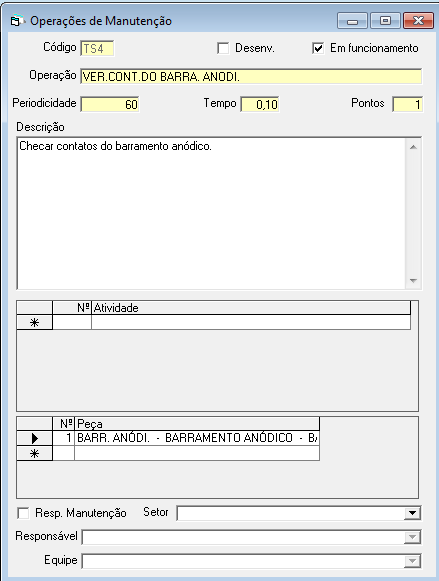 Responsável : Opção para indicar o responsável pela manutenção.